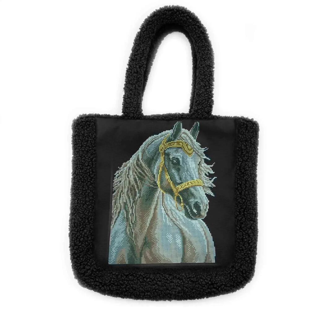 ТБ_Шоппер_810 Virena Набір для вишивки бісером - Сумка-шоппер Білий кінь 43x30 см (штучне хутро Teddy)