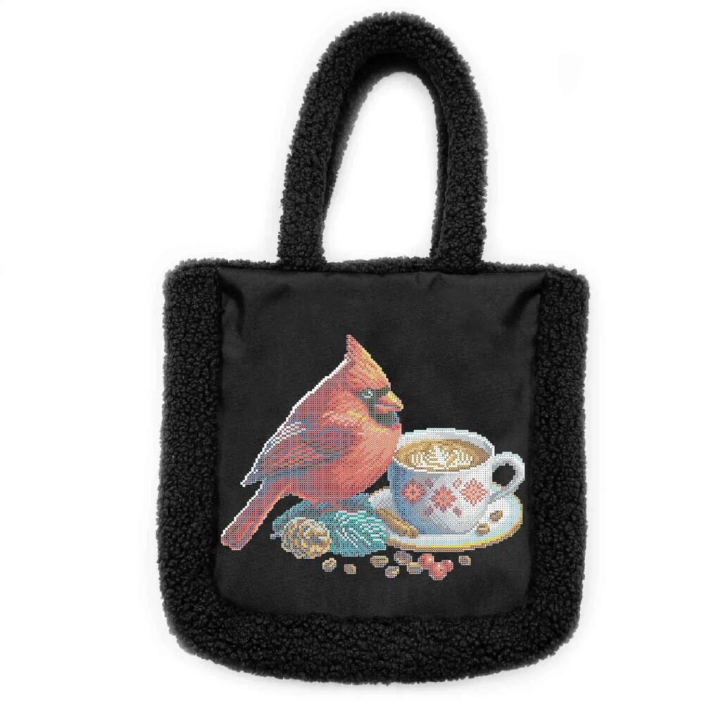 ТБ_Шоппер_814 Virena Набір для вишивки бісером - Сумка-шоппер Кардинал червоний з кавою 43x30 см (штучне хутро Teddy)