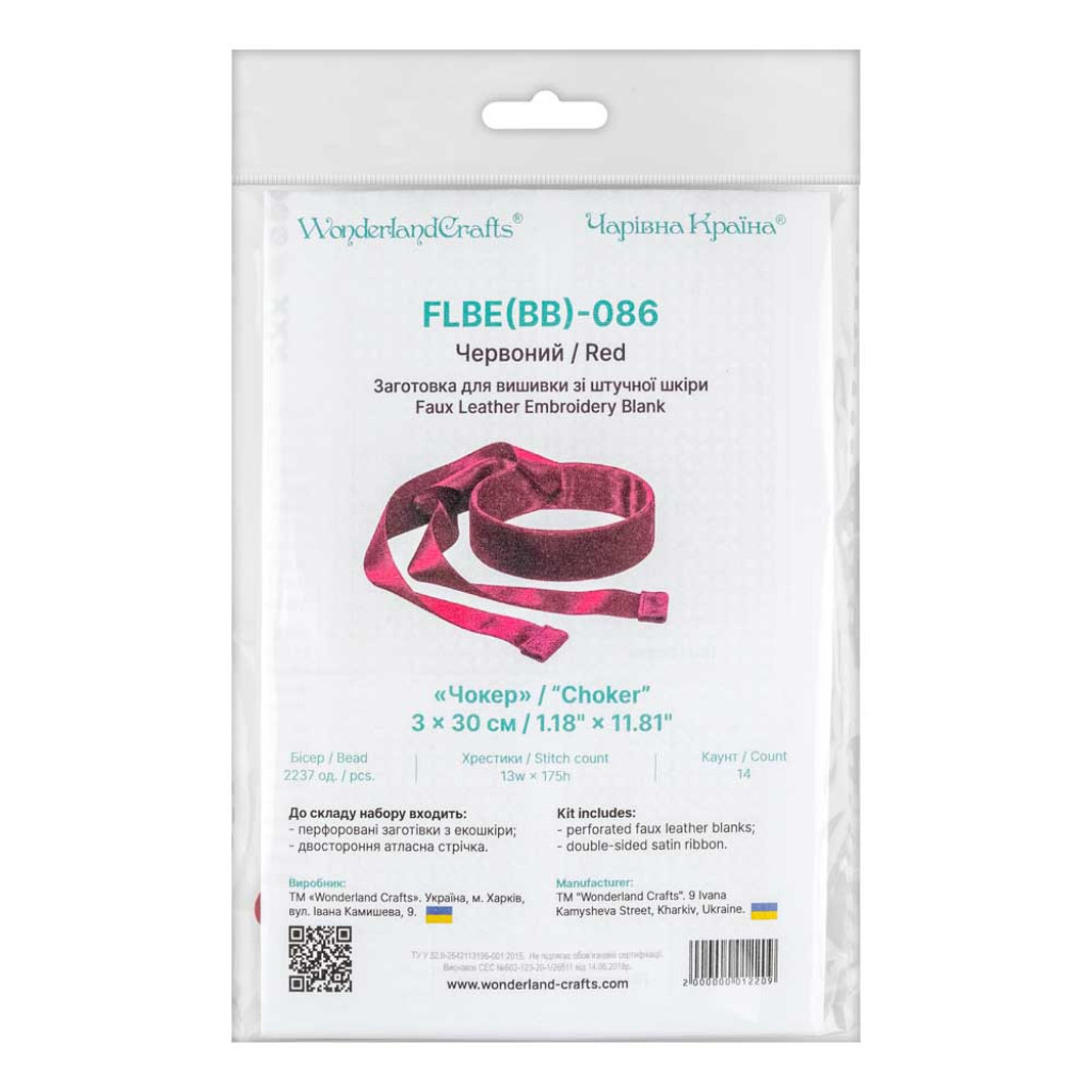 FLBE(BB)-086 Wonderland Crafts Заготовка для вишивання бісером або нитками на штучній шкірі - Чокер 3x30 см (червоний)