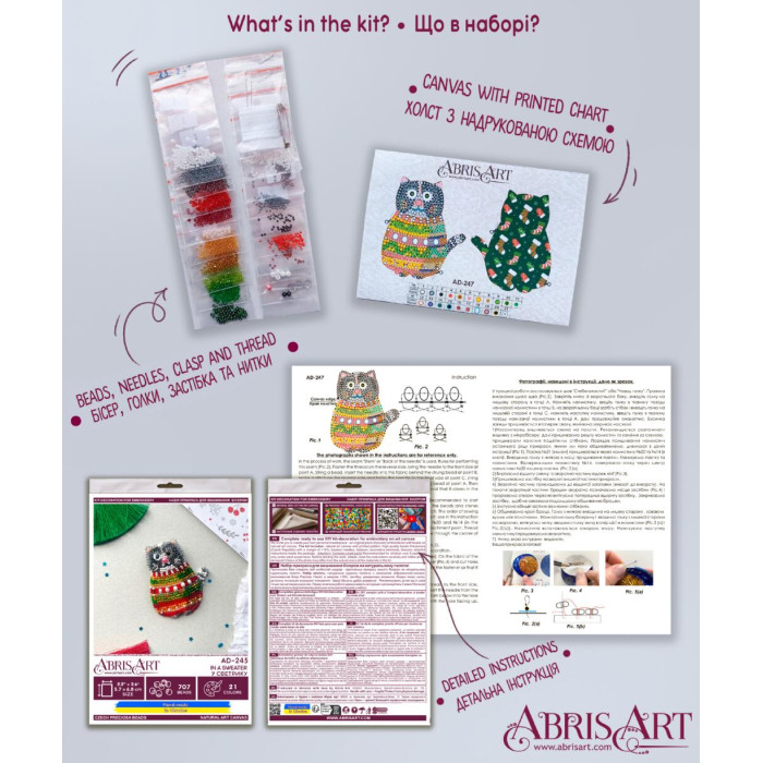 AD-247 Абрис Арт Набір для вишивки бісером - Брошка У светрику 57x68 мм