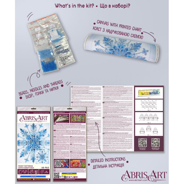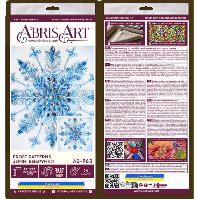 AB-963 Абрис Арт Набір для вишивки бісером - Зимні візерyнки 22x22 см, художнє полотно з малюнком (АВ-963)