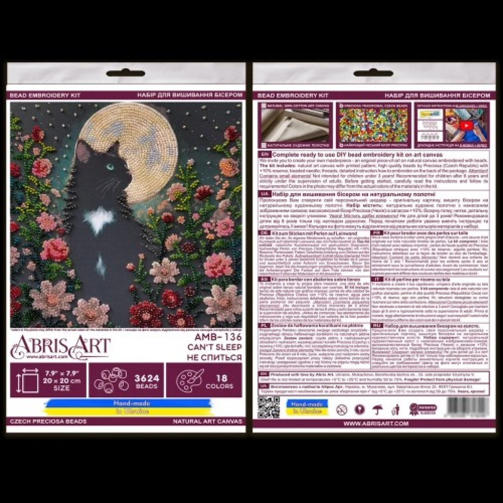 AMB-136 Не спиться від Абрис Арт створений для тих, хто хоче отримати виразний результат на натуральному художньому холсті. На тканину вже нанесено зображення-схему з ключем, тож ви зручно орієнтуєтеся в кольорах і послідовності роботи. Відріз холста більший за розмір готової роботи, тому вишивати та оформлювати результат буде комфортно.