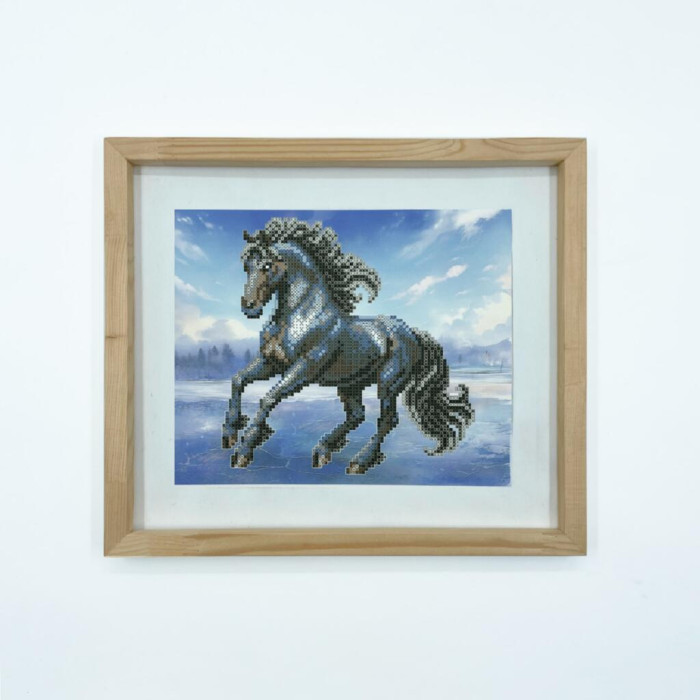ТБ_А4Н_613 Virena Набір для вишивки бісером - Кінь вороний 19х23,5 см (габардин)