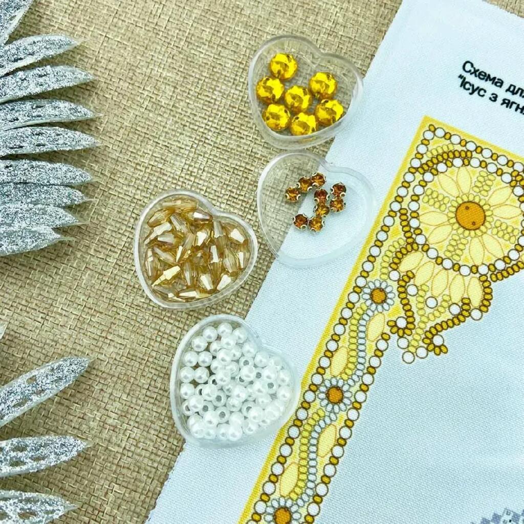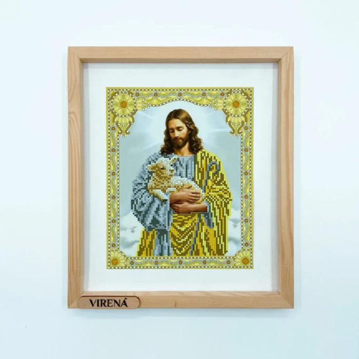 Набір для вишивки бісером від ТМ Virena дозволяє створити ікону «Ісус з ягням в золоті» з чітким та деталізованим зображенням. Малюнок нанесений на якісний габардин, який проклеєний флізеліном, що забезпечує стабільність тканини та зручність під час роботи.