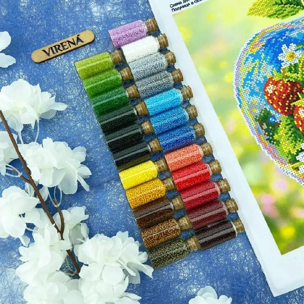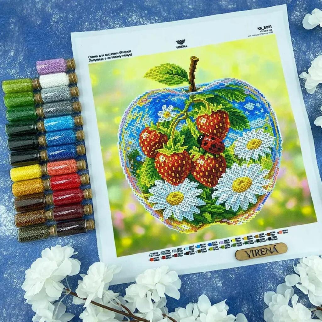 Набір Virena створений для вишивки бісером на габардині з проклейкою флізеліном у місцях вишивки, що забезпечує стабільність тканини та комфорт у роботі. Зрізи обпаяні, малюнок водостійкий, а схема надрукована чітко та контрастно з насиченими кольорами, тому зручно орієнтуватися за елементами під час вишивки.