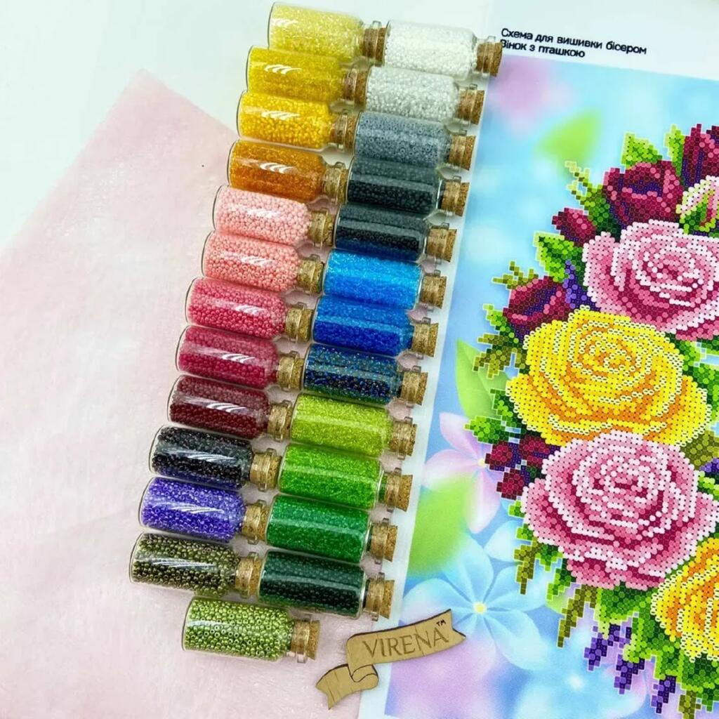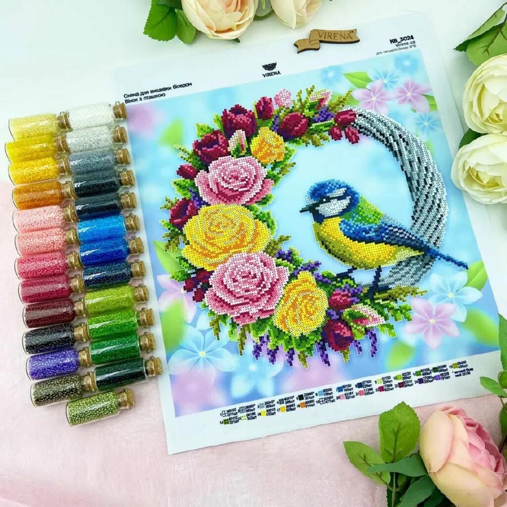 ТБ_КВ_3024 Virena Набір для вишивки бісером - Вінок з пташкою 29,5x29,5см (габардин)