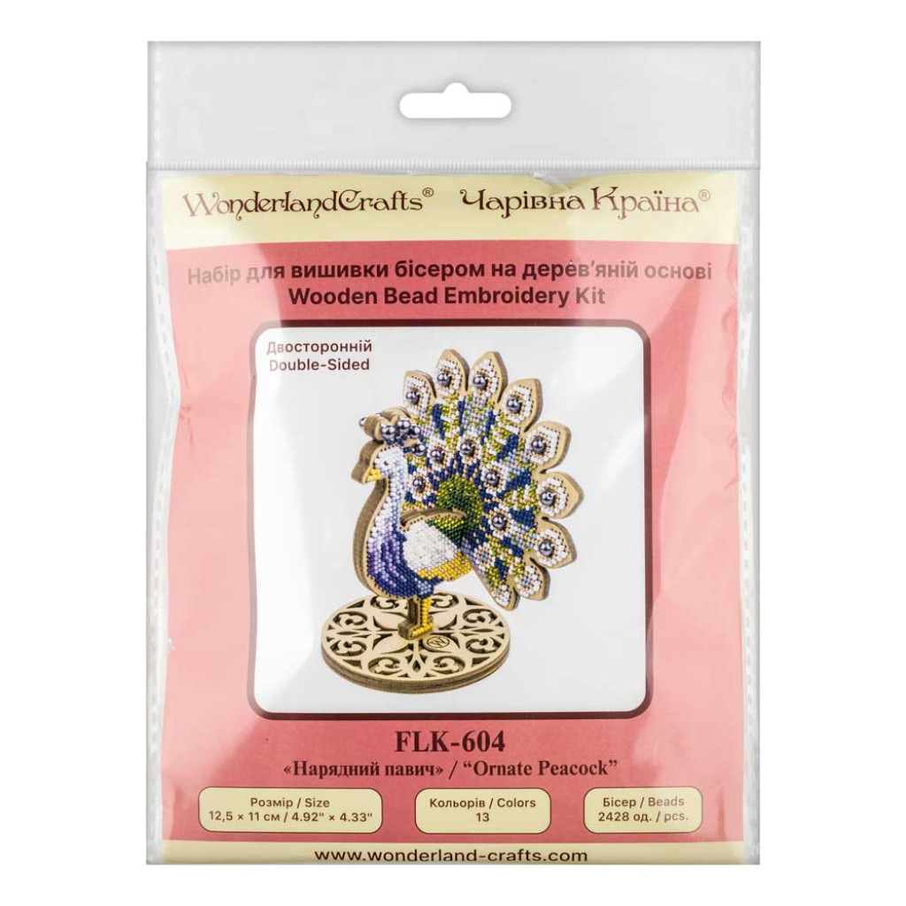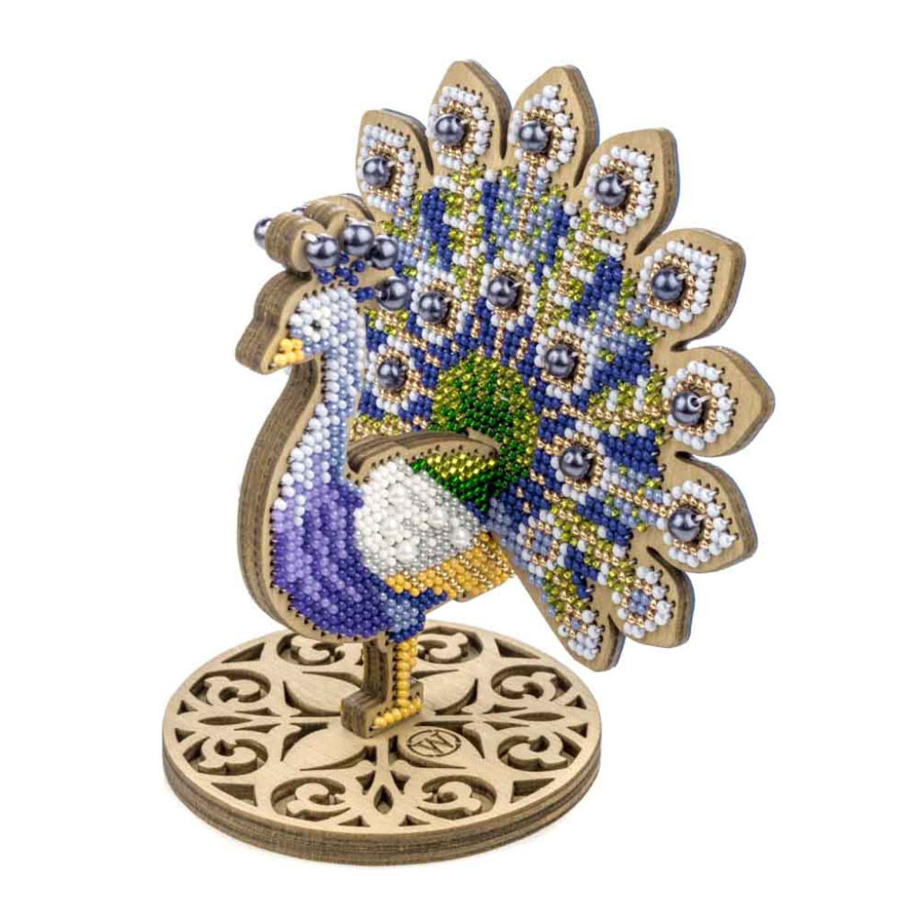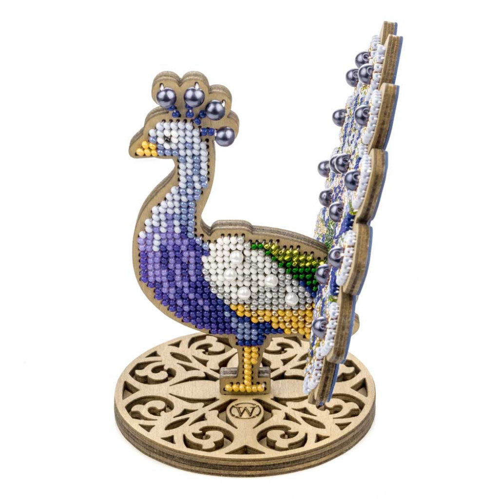 FLK-604 Wonderland Crafts Набір для вишивки бісером по дереву - Нарядний павич, 12,5x11 см