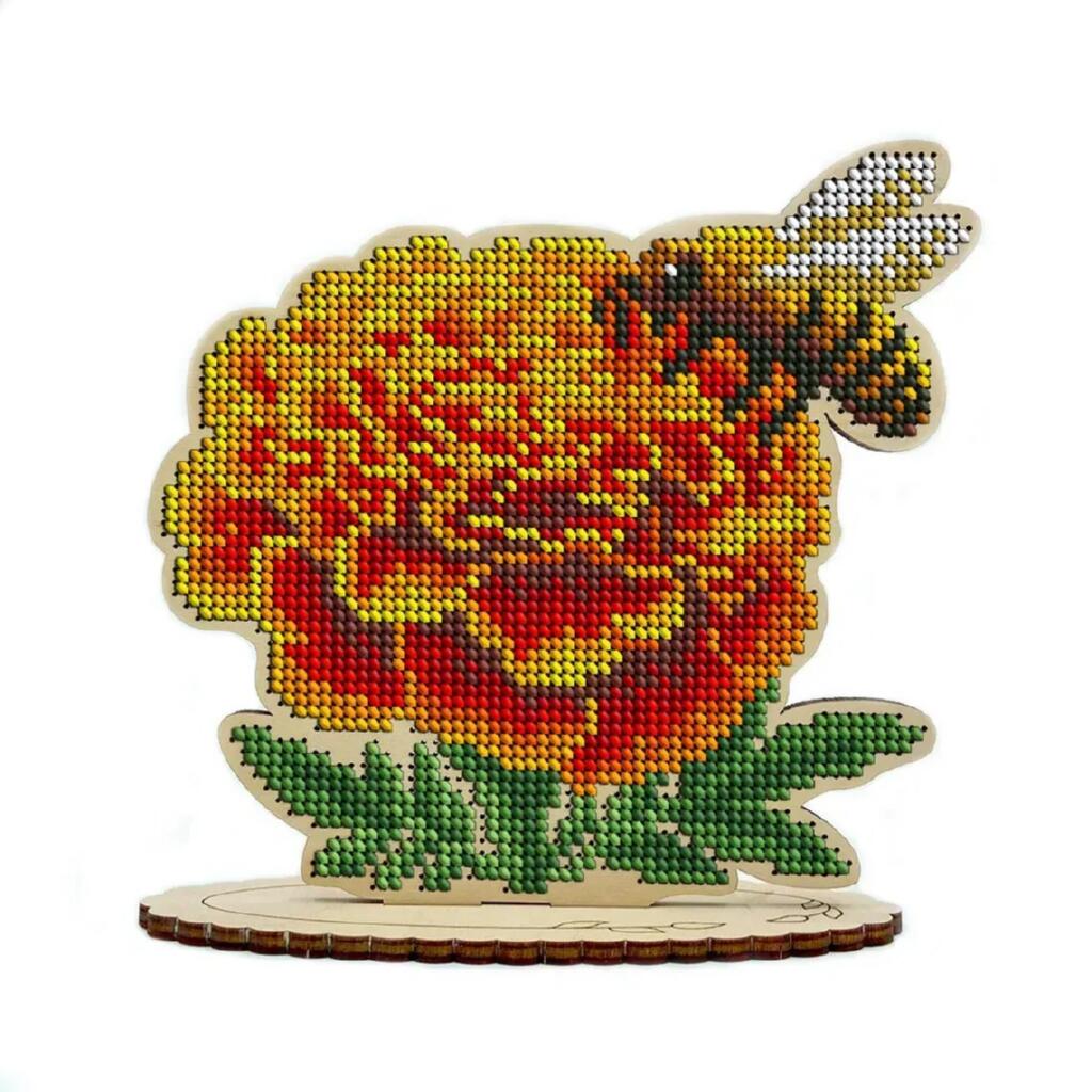 ТБ_ФІН_114 Чорнобривець, квіти України, 14,4х14 см. Фігурка інтер'єрна з дерева. Virena. Набір для вишивки бісером