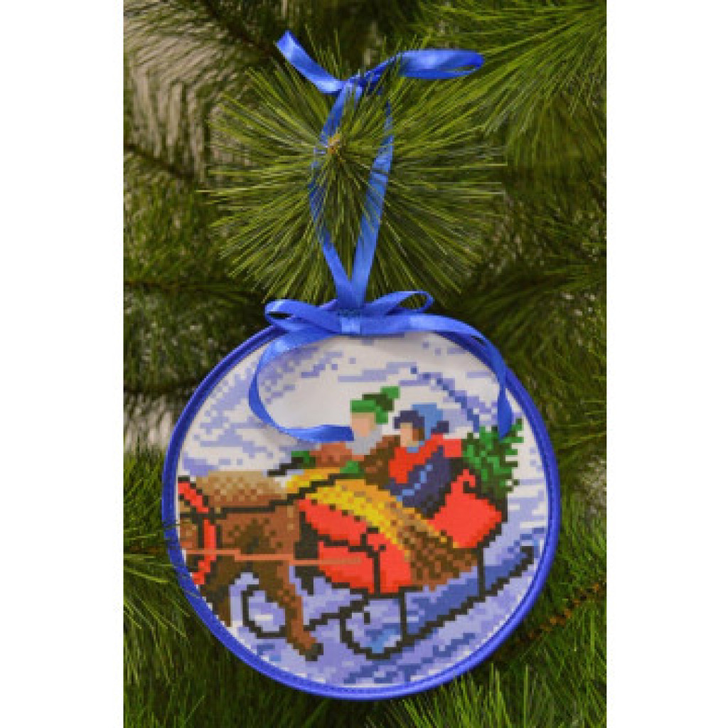 ТР198аБ1414k Барвиста вишиванка Набір для вишивки бісером - Пошита новорічна іграшка Дорогою додому 14x14 см (атлас)