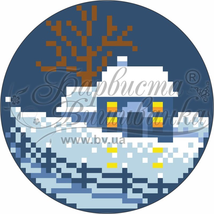 ТР209аБ1010k Барвиста вишиванка Набір для вишивки бісером - Пошита новорічна іграшка Зимовий вечір 10x10 см (атлас)