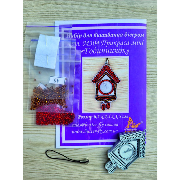 М304 Butterfly Набір для вишивки бісером на пластику - Іграшка Годинничок 6,5x4x1,5 см