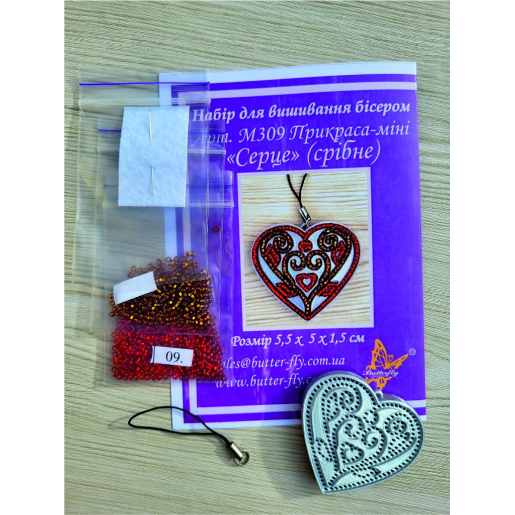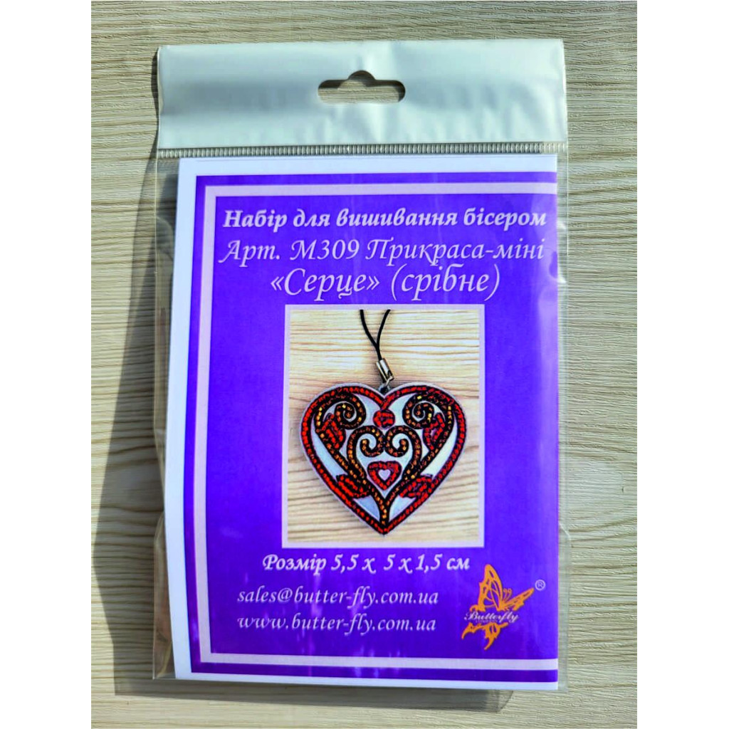 М309 Butterfly Набір для вишивки бісером на пластику - Іграшка Серце 5,5x5x1,5 см (колір срібний)