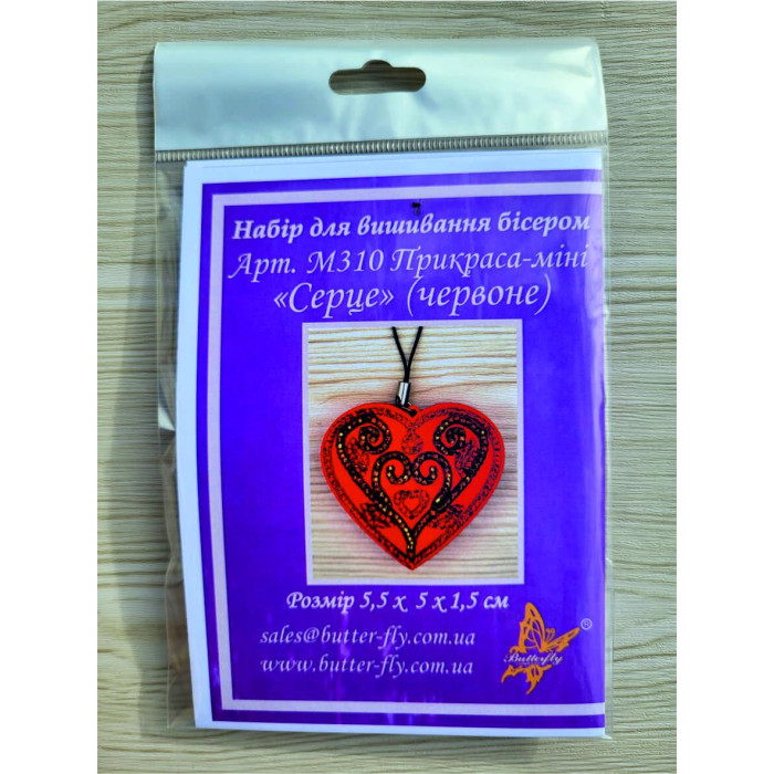 М310 Butterfly Набір для вишивки бісером на пластику - Іграшка Серце 5,5x5x1,5 см (колір червоний)