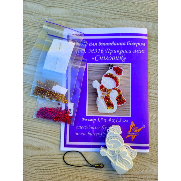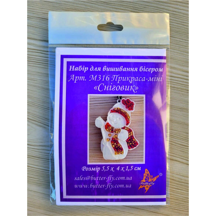 М316 Butterfly Набір для вишивки бісером на пластику - Іграшка Сніговик 5,5x4x1,5 см