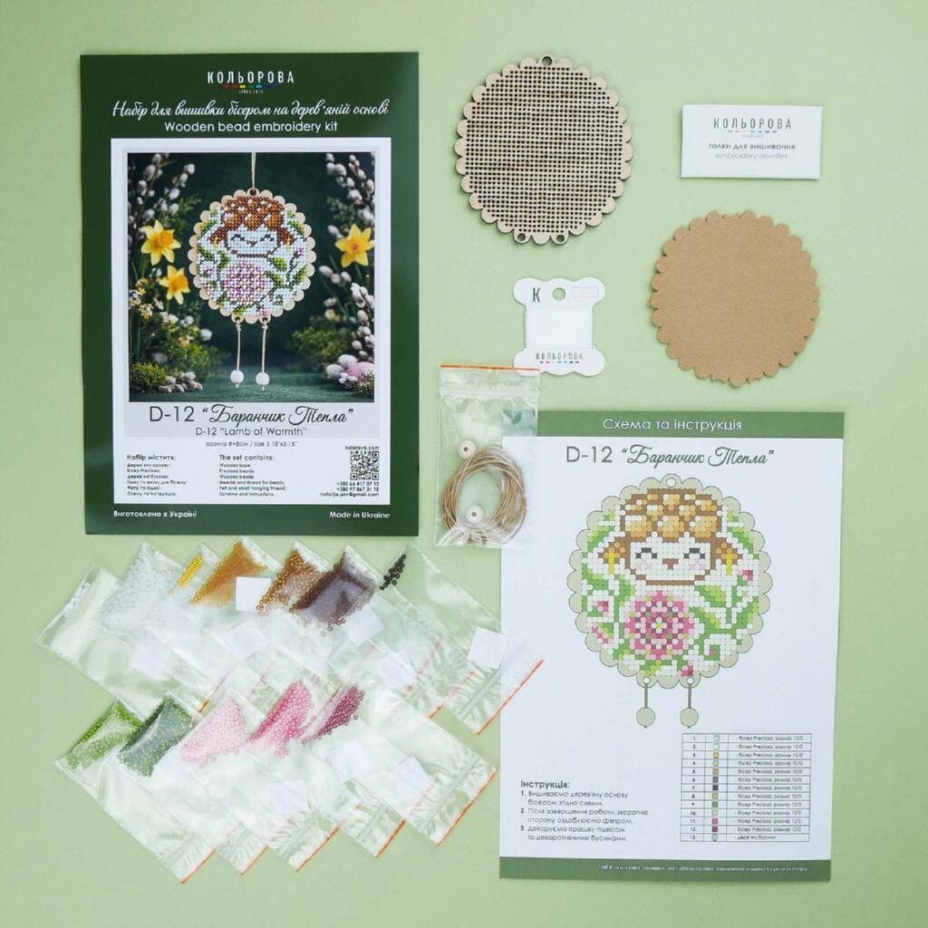 Основою набору є перфорована дерев’яна заготовка, отвори якої спеціально підготовлені для вишивки бісером. Завдяки такій конструкції бісер рівно лягає на поверхню та формує акуратний орнамент.