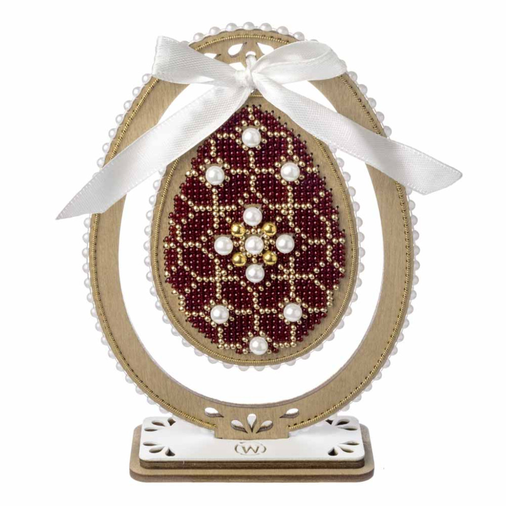 FLK-609 Wonderland Crafts Набір для вишивки бісером по дереву - Писанка. Рубіновий орнамент, 10,5x15 см