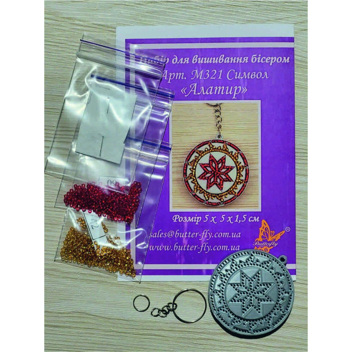 М321 Butterfly Набір для вишивки бісером на пластику - Брелок Символ Алатир 5х5х1,5 см