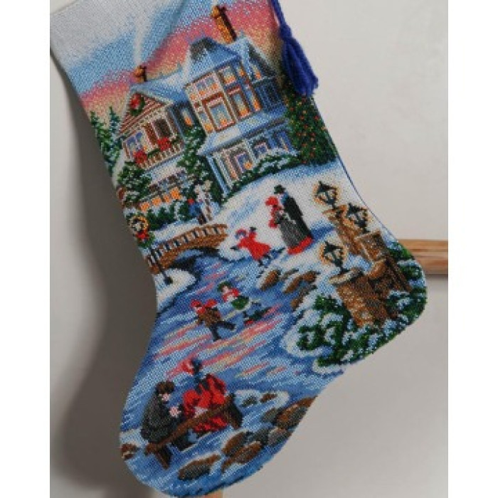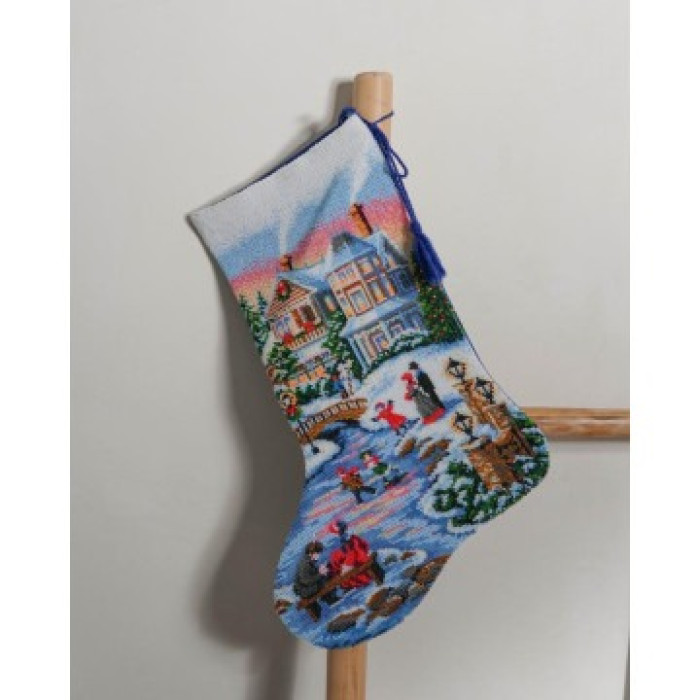 ТР155аБ3149k Барвиста вишиванка Набір для вишивки бісером - Пошитий новорічний чобіток Чарівна ковзанка 31x49 (атлас, білий)