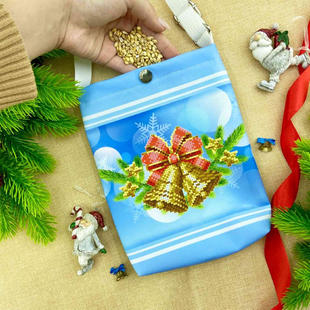 ТБ_Мішечок_210 Virena Набір для вишивки бісером - Мішечок для посівання з ременем з дзвониками 16х22,5х2 см (габардин)