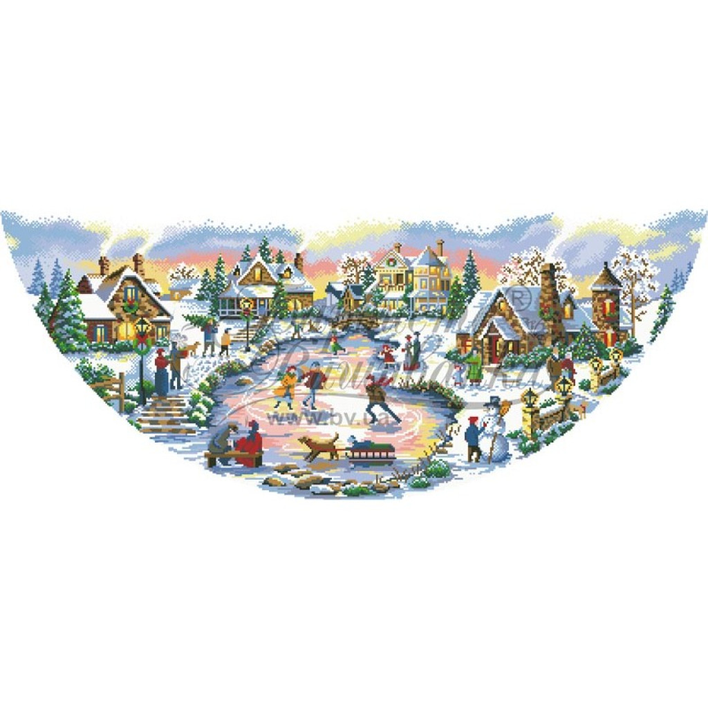 Набір Пошита спідничка під ялинку Чарівна ковзанка– це святковий комплект для вишивання бісером, який прикрасить простір під новорічною ялинкою. Завдяки попередньому пошиттю виріб не потребує додаткового складання після вишивки, має акуратну форму та зручну центральну прорізь для встановлення навколо основи ялинки.