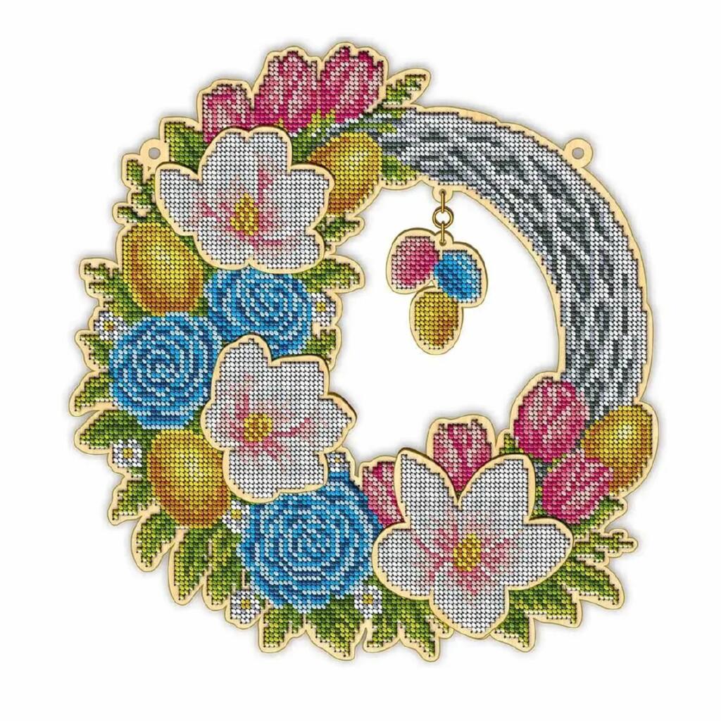 ТБ_Віночок_119 Virena Набір для вишивки бісером по дереву - Віночок настінний Великдень, 26x27 см