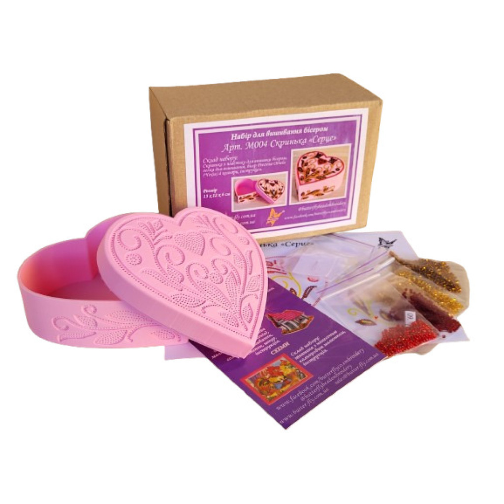 М004 Butterfly Набір для вишивки бісером - Скринька Серце 13x12x6 см, пластик (рожева)
