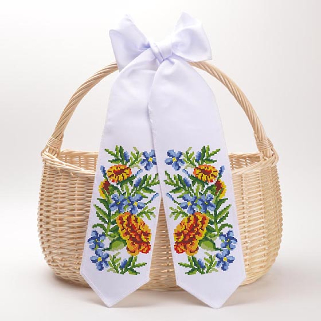 Святковий бант до Спаса для оздоблення кошика чи інтер’єру. Домоткане полотно приємне в роботі та добре тримає форму, а чіткий друк схеми з ключем забезпечує зручний та передбачуваний процес вишивання.