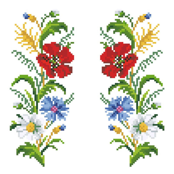 Основа: домоткане полотно білого кольору з нанесеним малюнком-схемою, дубльоване флізеліном