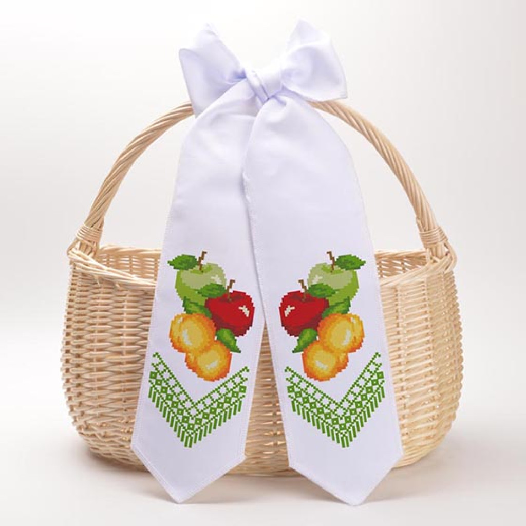 Святковий бант до Спаса для оздоблення кошика чи інтер’єру. Щільний габардин добре тримає форму, а чіткий друк схеми з ключем забезпечує зручний і передбачуваний процес вишивання.