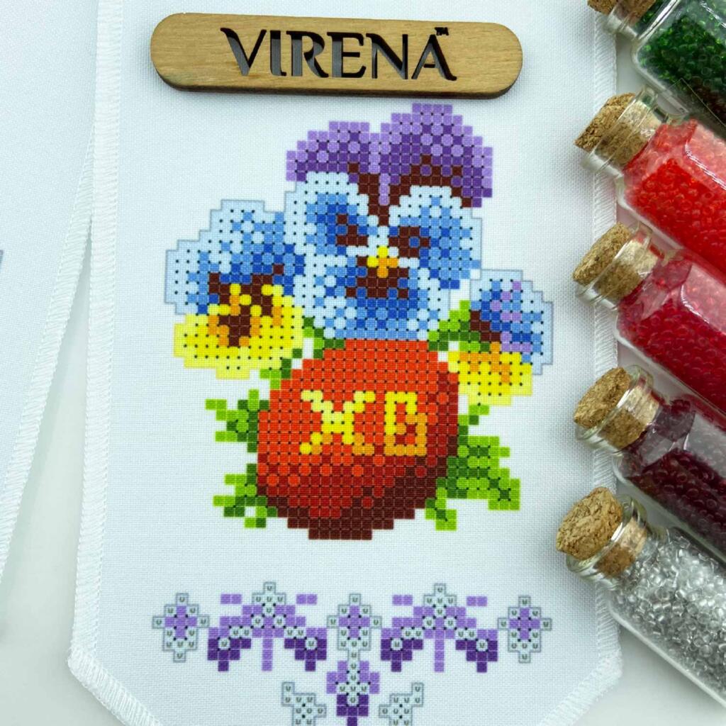 Комплект Virena призначений для вишивання бісером великоднього банта на кошик. Основа з габардину проклеєна флізеліном у місцях вишивання, а зрізи акуратно обметані, тому виріб зручний у роботі та добре тримає форму.