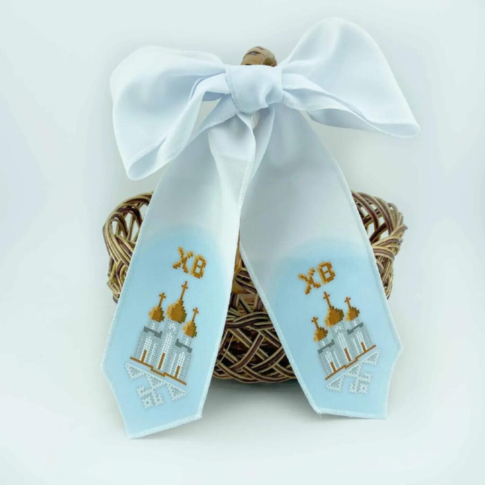 Набір Virena призначений для створення великоднього банта на кошик у техніці вишивання бісером. Основа виконана з габардину та проклеєна флізеліном у місцях вишивки, що забезпечує стабільність тканини під час роботи. Зрізи банта обметані, малюнок водостійкий, а схема надрукована чітко й контрастно, тому зручно орієнтуватися за елементами та кольорами.
