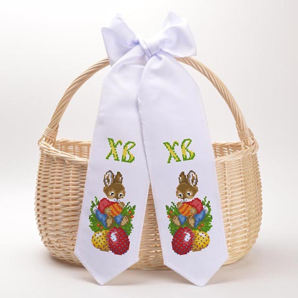 Набір для створення декоративного великоднього банта з нанесеним малюнком-схемою для вишивки бісером. Орнамент виконаний у святковому стилі та стане гарною прикрасою великоднього кошика.