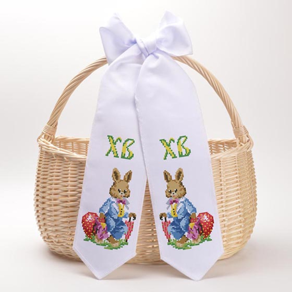 Набір для створення декоративного великоднього банта з нанесеним малюнком-схемою для вишивки бісером. Орнамент виконаний у святковому стилі та стане гарною прикрасою великоднього кошика.