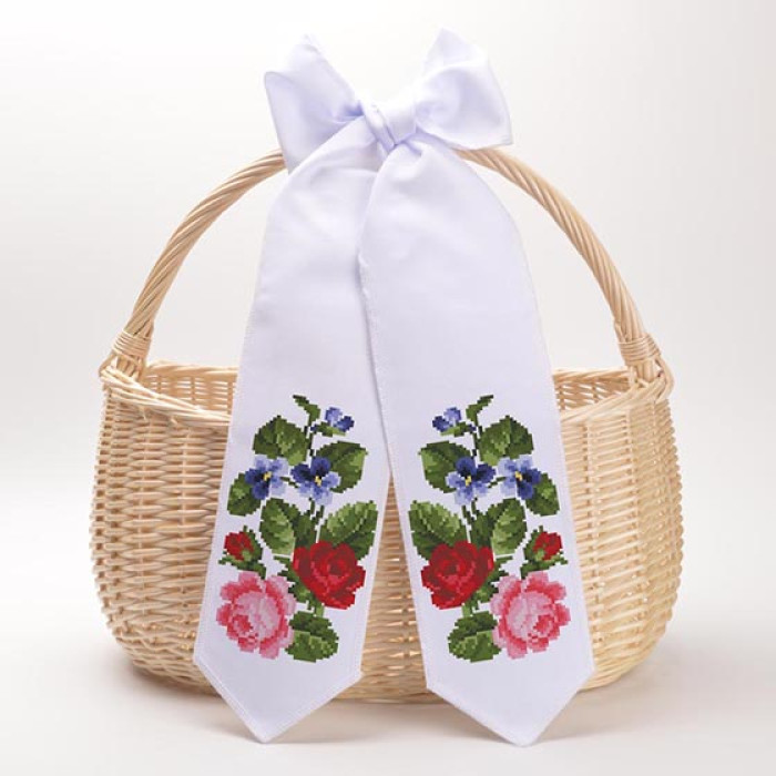 Набір для створення декоративного великоднього банта з нанесеним малюнком-схемою для вишивки бісером. Орнамент виконаний у святковому стилі та стане гарною прикрасою великоднього кошика.