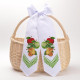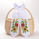 Сюжети бантів охоплюють традиційні орнаменти, християнську символіку, весняні мотиви та сучасний стиль. Банти легко кріпляться до кошика і можуть стати чудовим подарунком, зробленим власноруч.