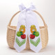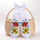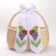Сюжети бантів охоплюють традиційні орнаменти, християнську символіку, весняні мотиви та сучасний стиль. Банти легко кріпляться до кошика і можуть стати чудовим подарунком, зробленим власноруч.