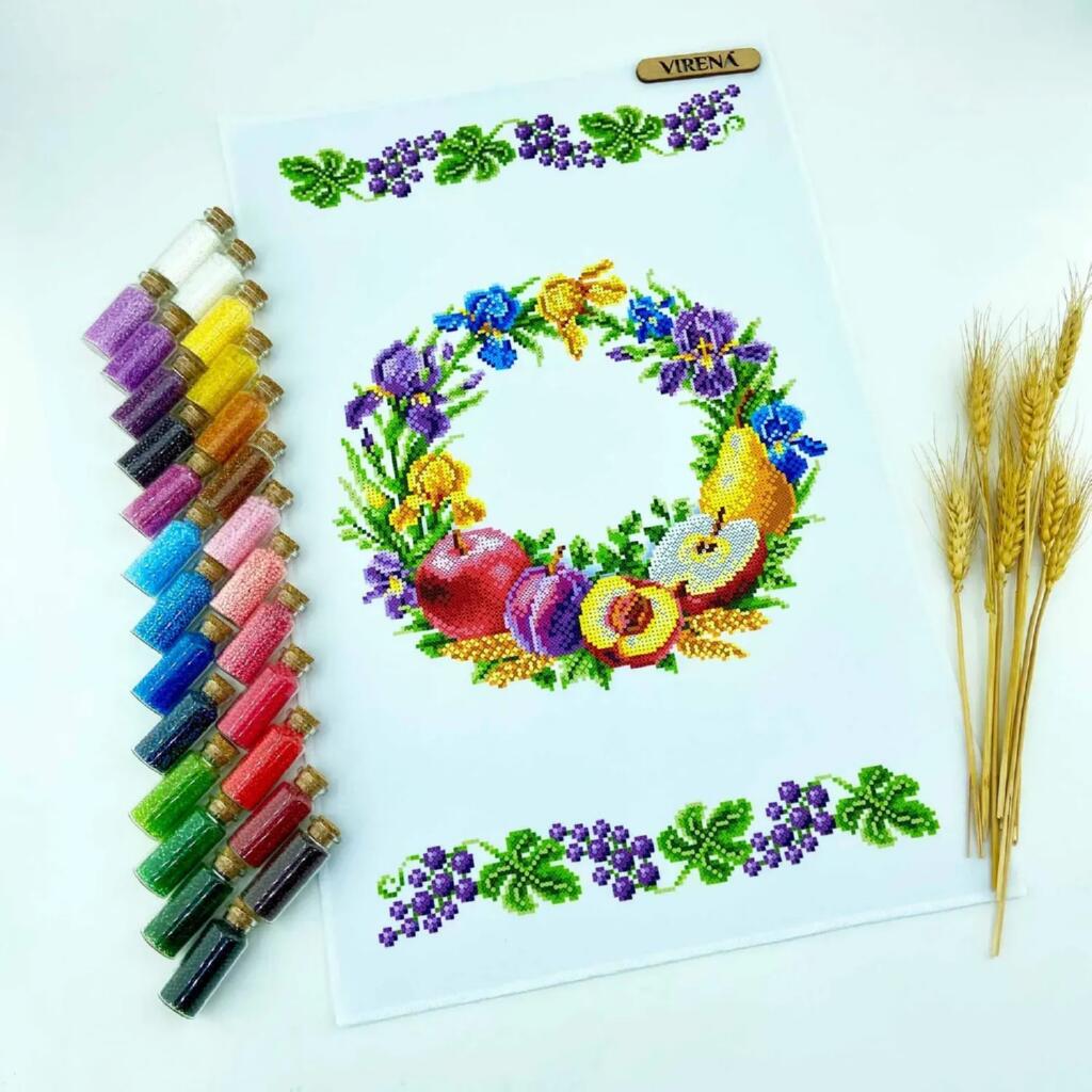 Набір для вишивки бісером дозволяє створити тематичний рушник до свята Спаса власноруч. Чітка схема з насиченим друком забезпечує зручність у роботі та допомагає акуратно розміщувати бісер відповідно до малюнка.