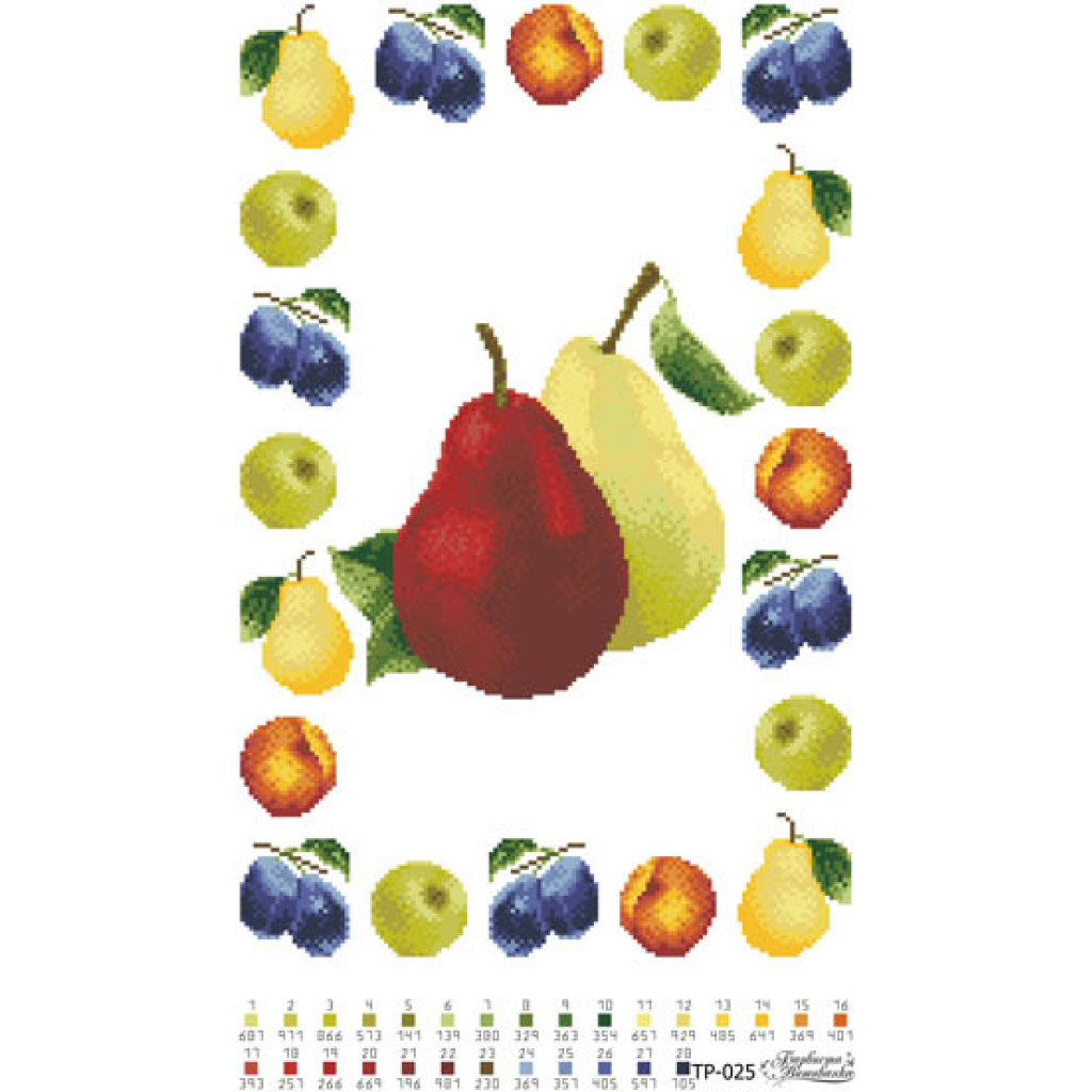 Основа: домоткане полотно білого кольору з нанесеним малюнком-схемою, дубльоване флізеліном