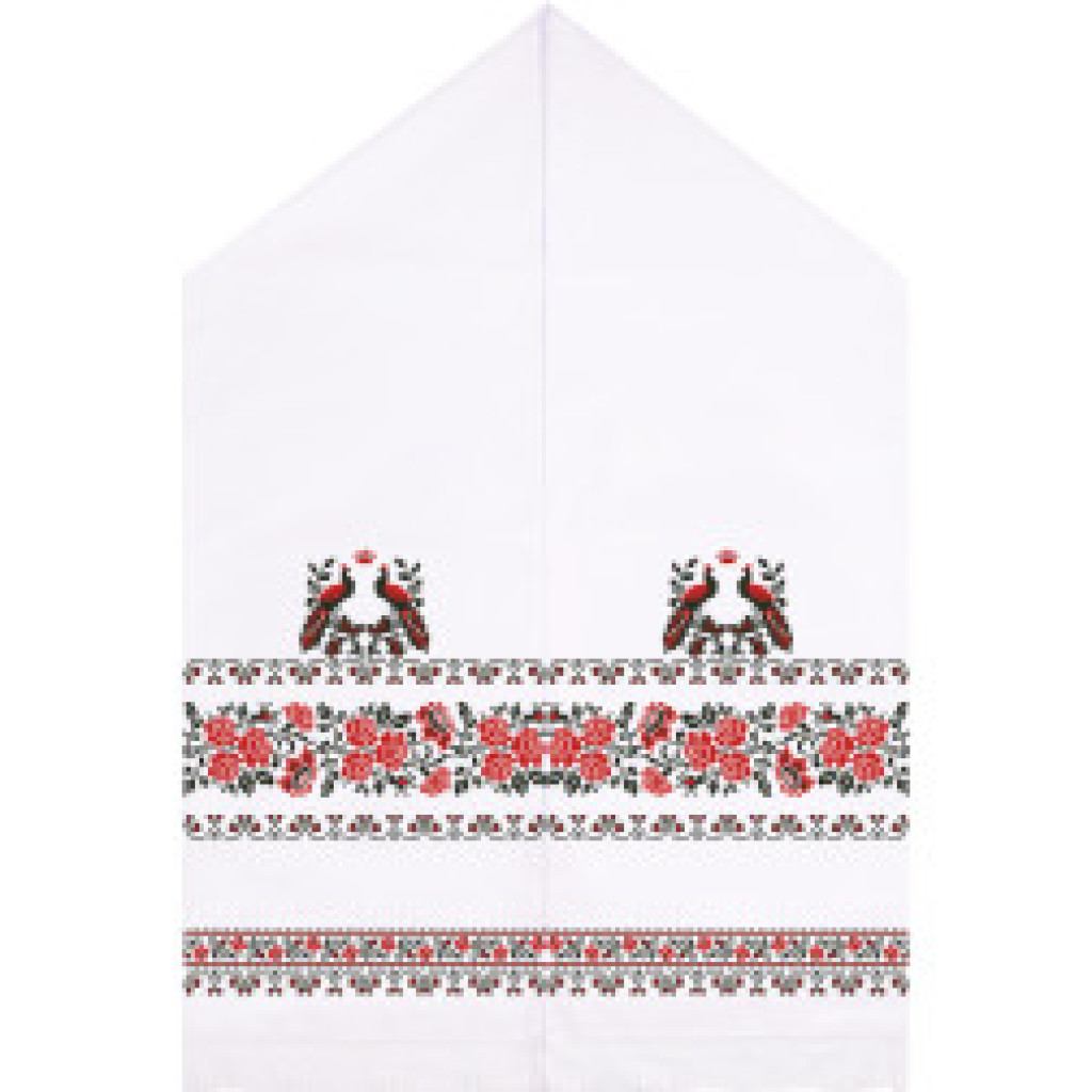 Друк схеми виконано екологічними фарбами, стійкими до прання. Готовий рушник матиме охайний вигляд і прикрасить найважливіші сімейні обряди.