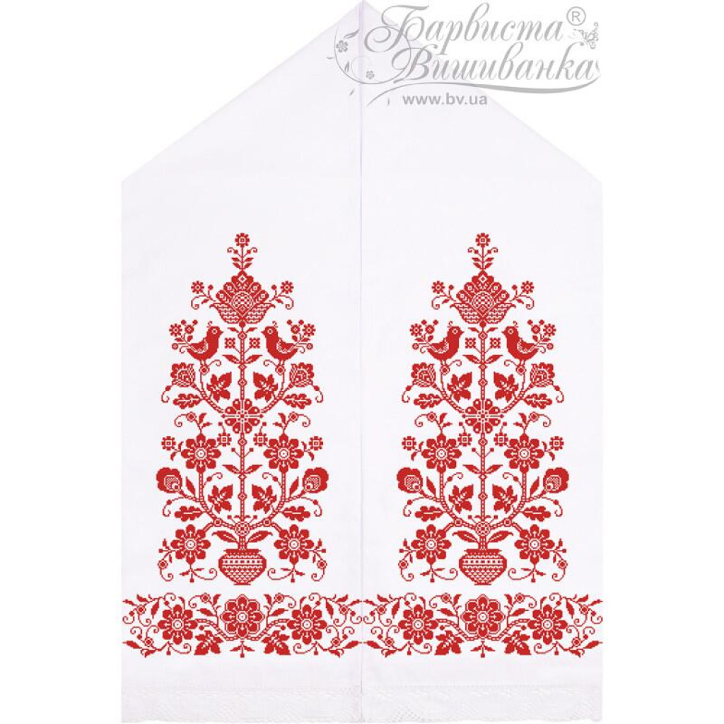 Схема надрукована екологічно чистими фарбами, стійкими до прання. Готовий рушник зберігає яскравість кольорів і чіткість малюнку, стаючи окрасою весільного обряду та пам’ятним символом родинного щастя.