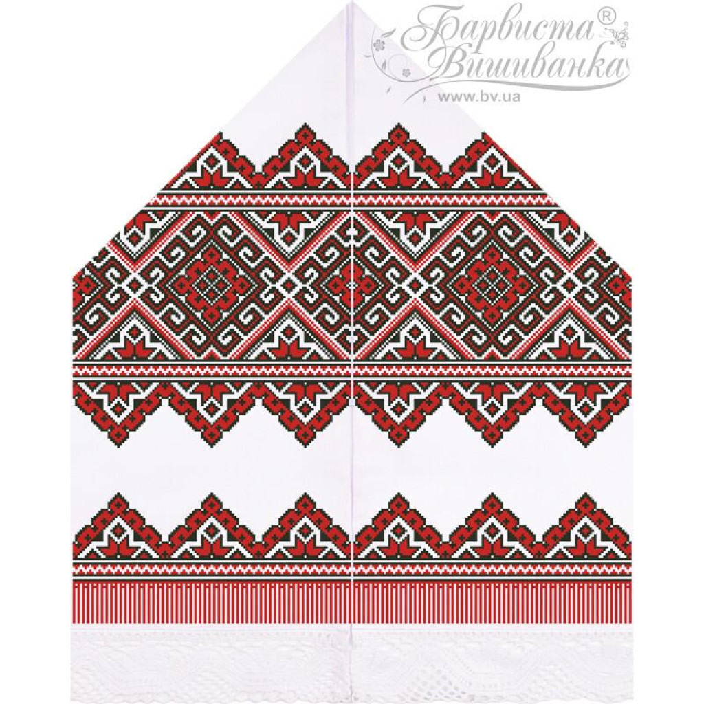 Схема надрукована екологічно чистими фарбами, стійкими до прання. Можливі відхилення у розмірі тканини ±3%. Готовий рушник виглядатиме урочисто та збережеться як родинна реліквія.