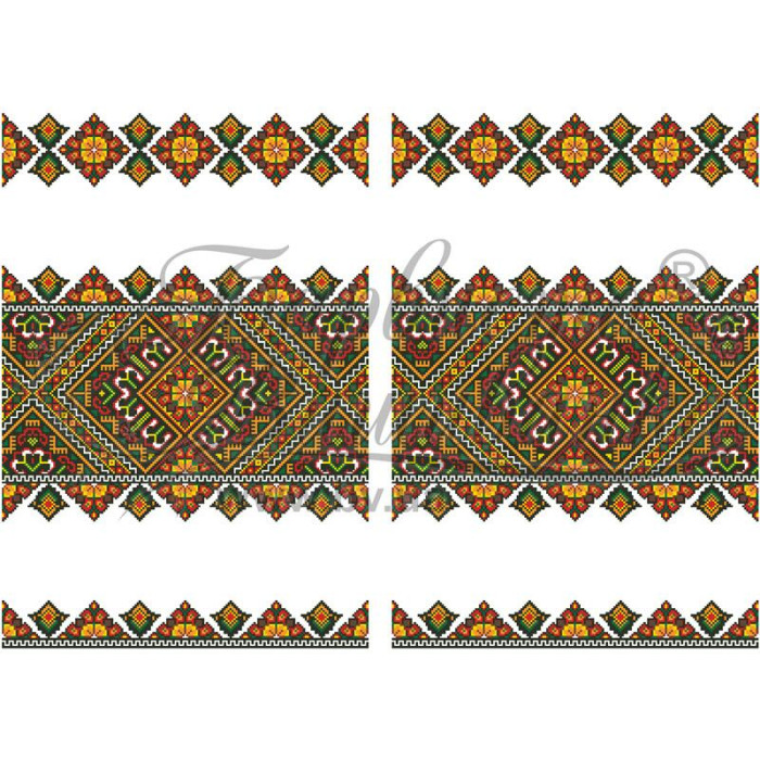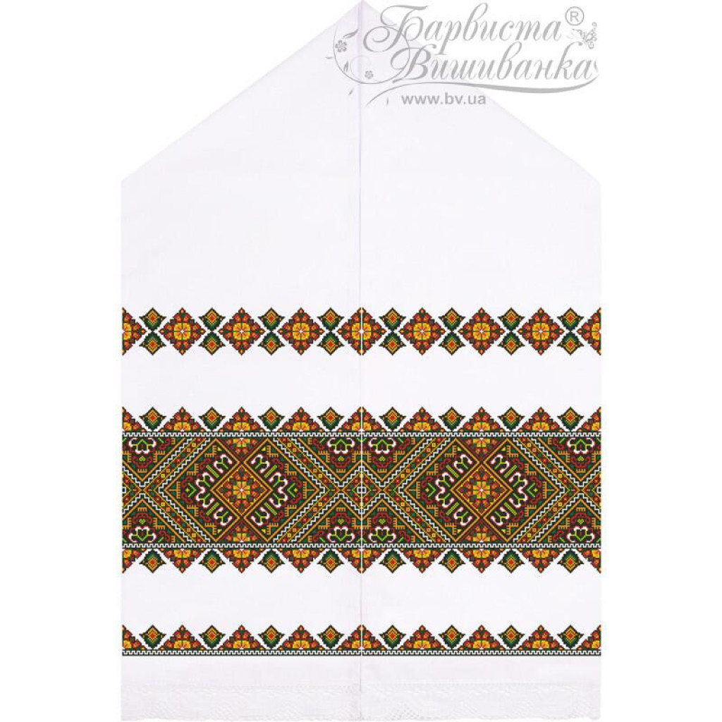 Схема надрукована екологічно чистими фарбами, стійкими до прання. Готовий рушник зберігає яскравість кольорів і чіткість малюнку, стаючи окрасою весільного обряду та пам’ятним символом родинного щастя.