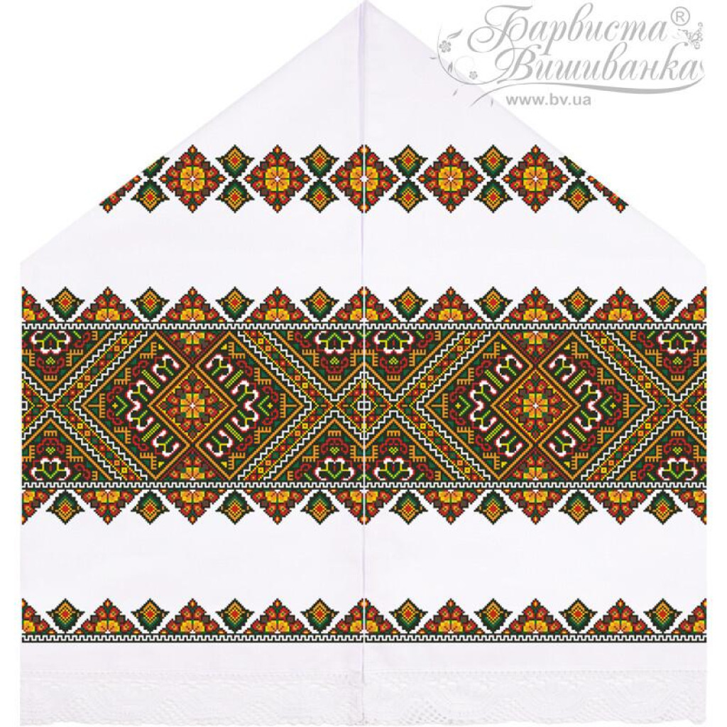 Рушник під Коровай – святкова заготовка для вишивання бісером, яка стане окрасою весільного столу та символом достатку і щастя в родині. Атлас надає рушнику блиску й урочистості, а вишитий візерунок додає вишуканості композиції. Готовий виріб чудово поєднує традиційність і витонченість ручної роботи.