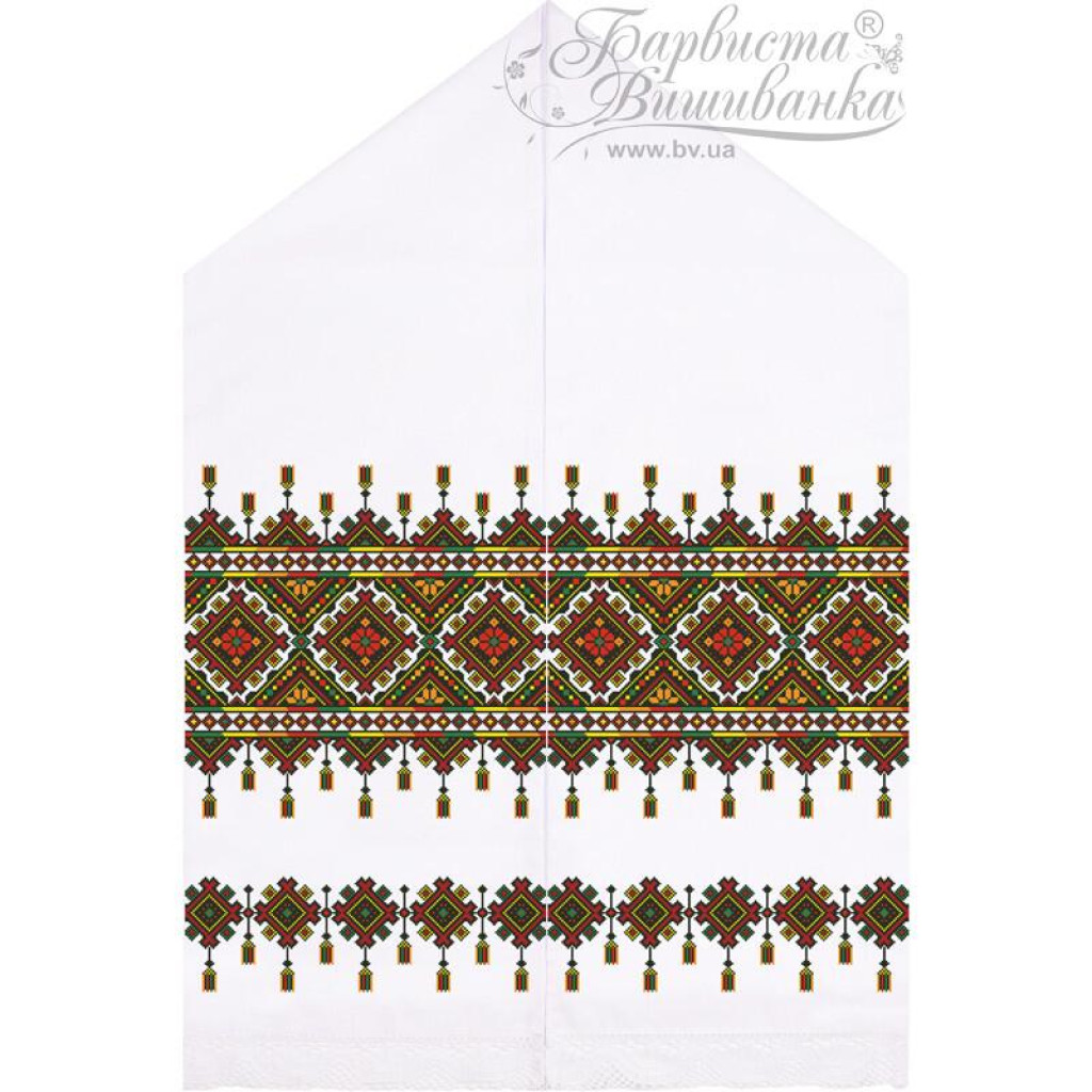 Схема надрукована екологічно чистими фарбами, стійкими до прання. Готовий рушник зберігає яскравість кольорів і чіткість малюнку, стаючи окрасою весільного обряду та пам’ятним символом родинного щастя.