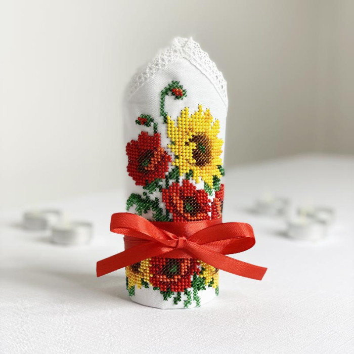 Спасівська хустинка на букет – це ніжна заготовка для вишивання бісером, створена для оздоблення святкових букетів або кошиків до Спасу. Атлас надає виробу приємного блиску, а традиційний орнамент підкреслює духовність і красу українських обрядів. Готова хустинка виглядає святково та витончено.