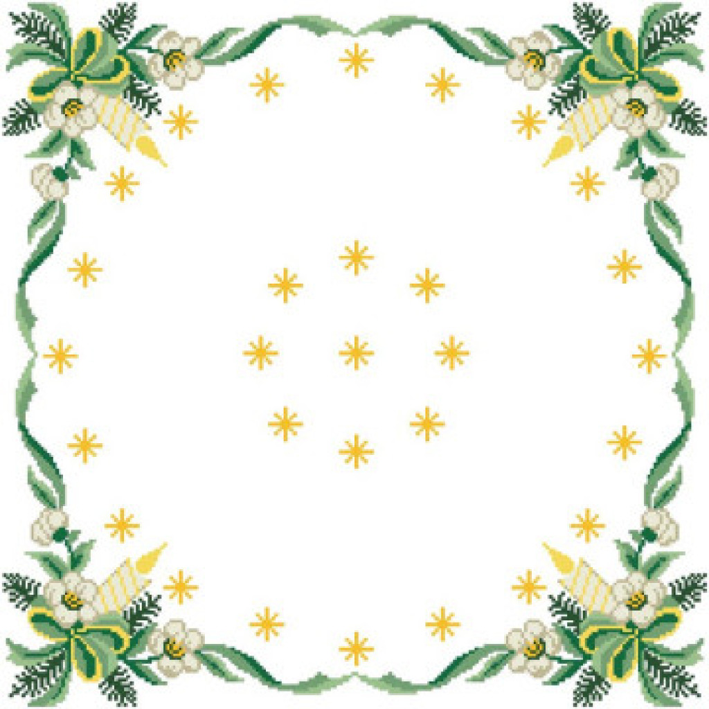 ТР148пБ5252k Барвиста вишиванка Набір для вишивки бісером - Новорічна скатертина Різдвяні зіроньки 75х75 (габардин, білий)