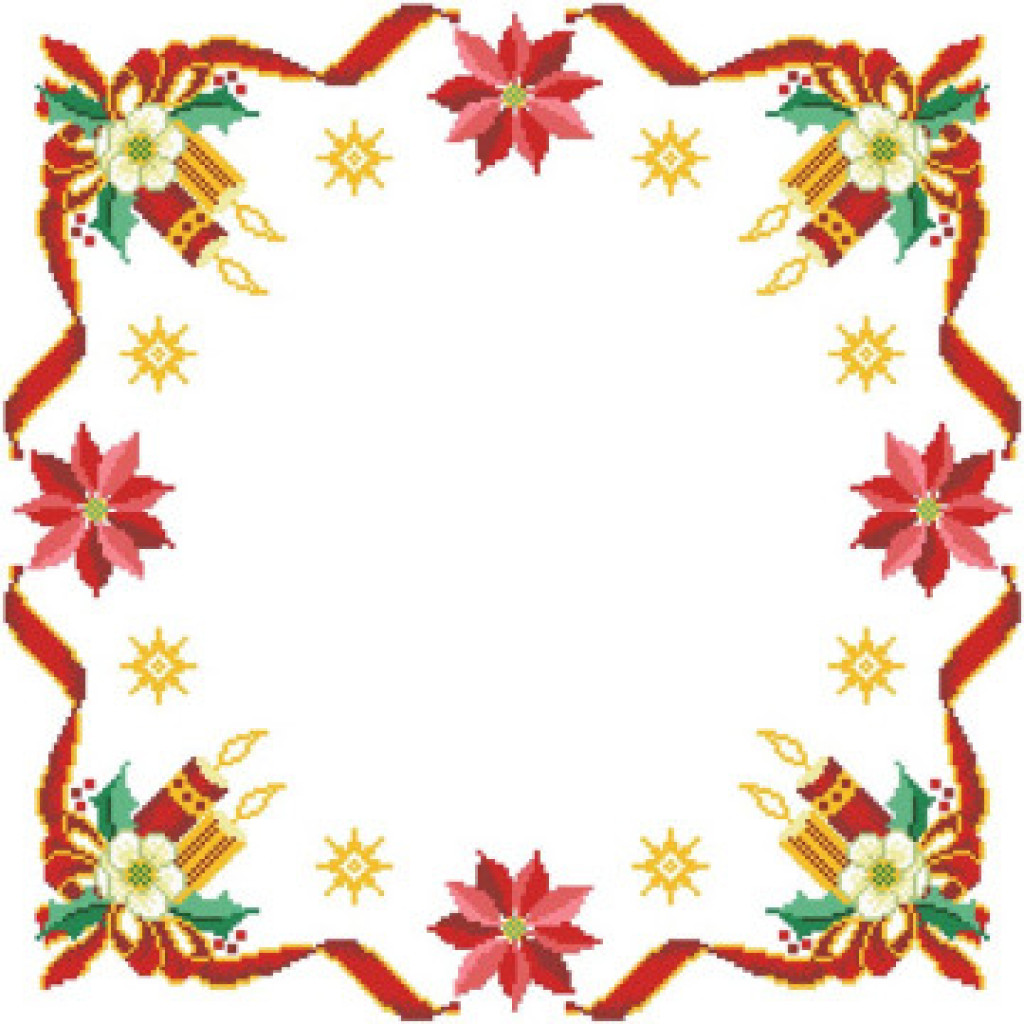 ТР149пБ5252k Барвиста вишиванка Набір для вишивки бісером - Новорічна скатертина Новорічна квітка 75х75 (габардин, білий)