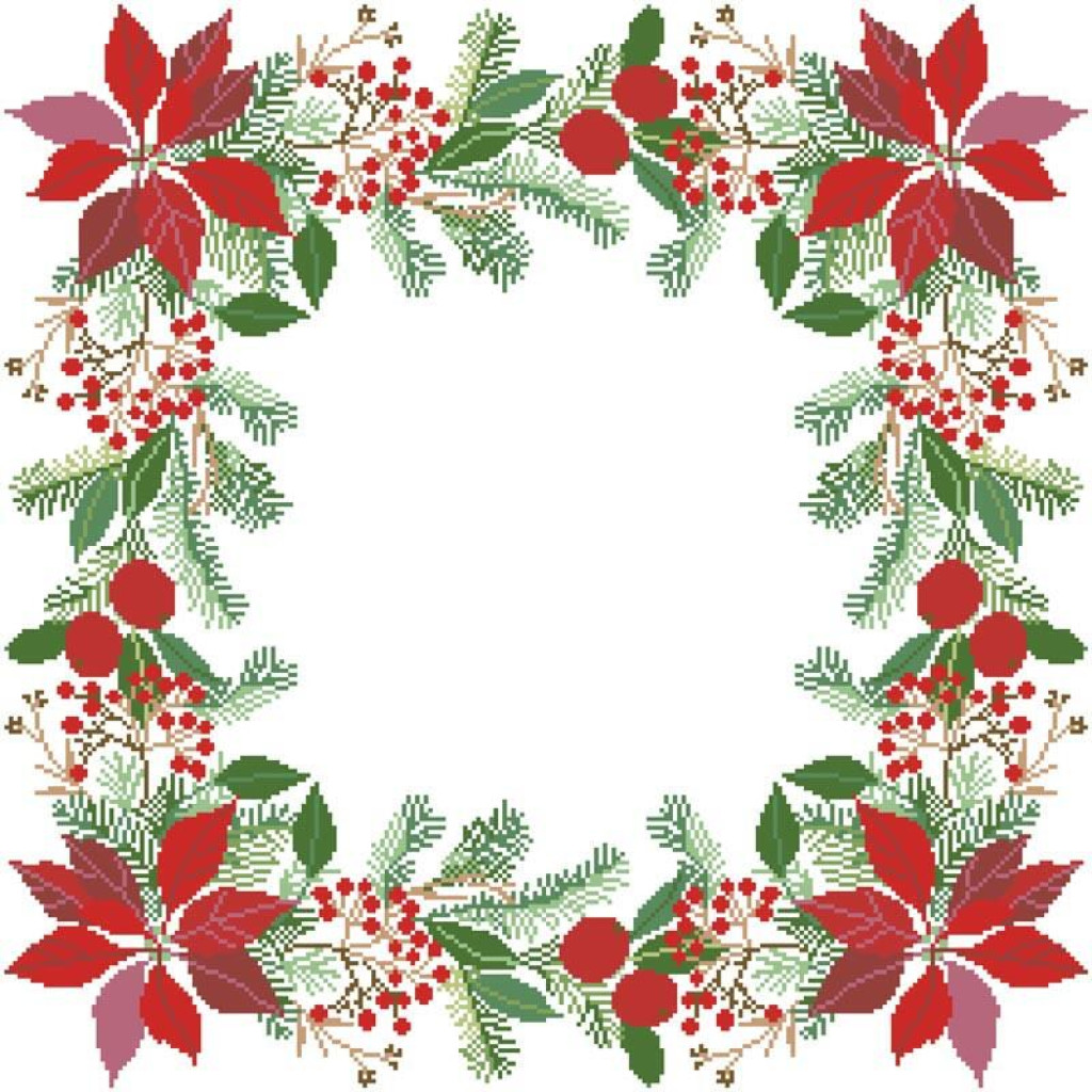 Схема надрукована екологічно чистими фарбами, стійкими до прання. Після вишивки скатертина збереже яскравість кольорів і стане чудовим елементом новорічного декору.