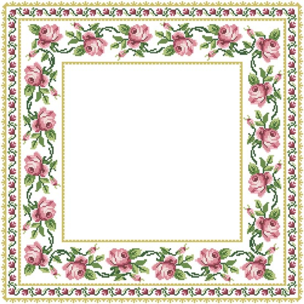 ТР038аБ5656k Барвиста вишиванка Набір для вишивки бісером - Скатертина Рожеві Троянди 80х80 (атлас, білий)