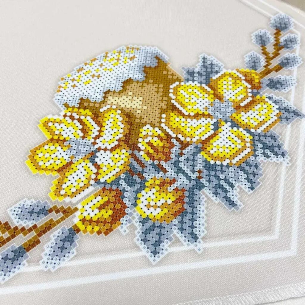 Заготовка має обметані зрізи, що полегшує процес вишивання та подальше оформлення. Малюнок водостійкий, схема чітка, з насиченими кольорами та високою якістю друку, що забезпечує комфортну роботу й акуратний результат. Посередині ранера передбачений шов зшивання, який є конструктивною особливістю виробу та не заважає процесу вишивання.